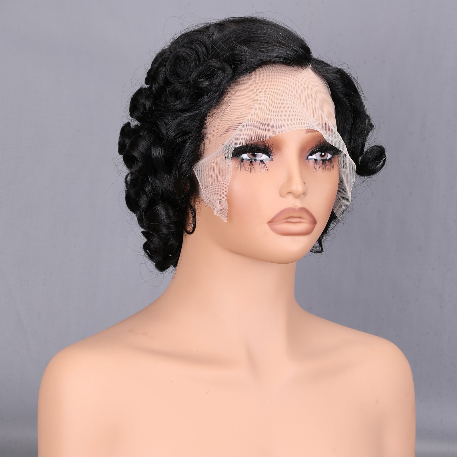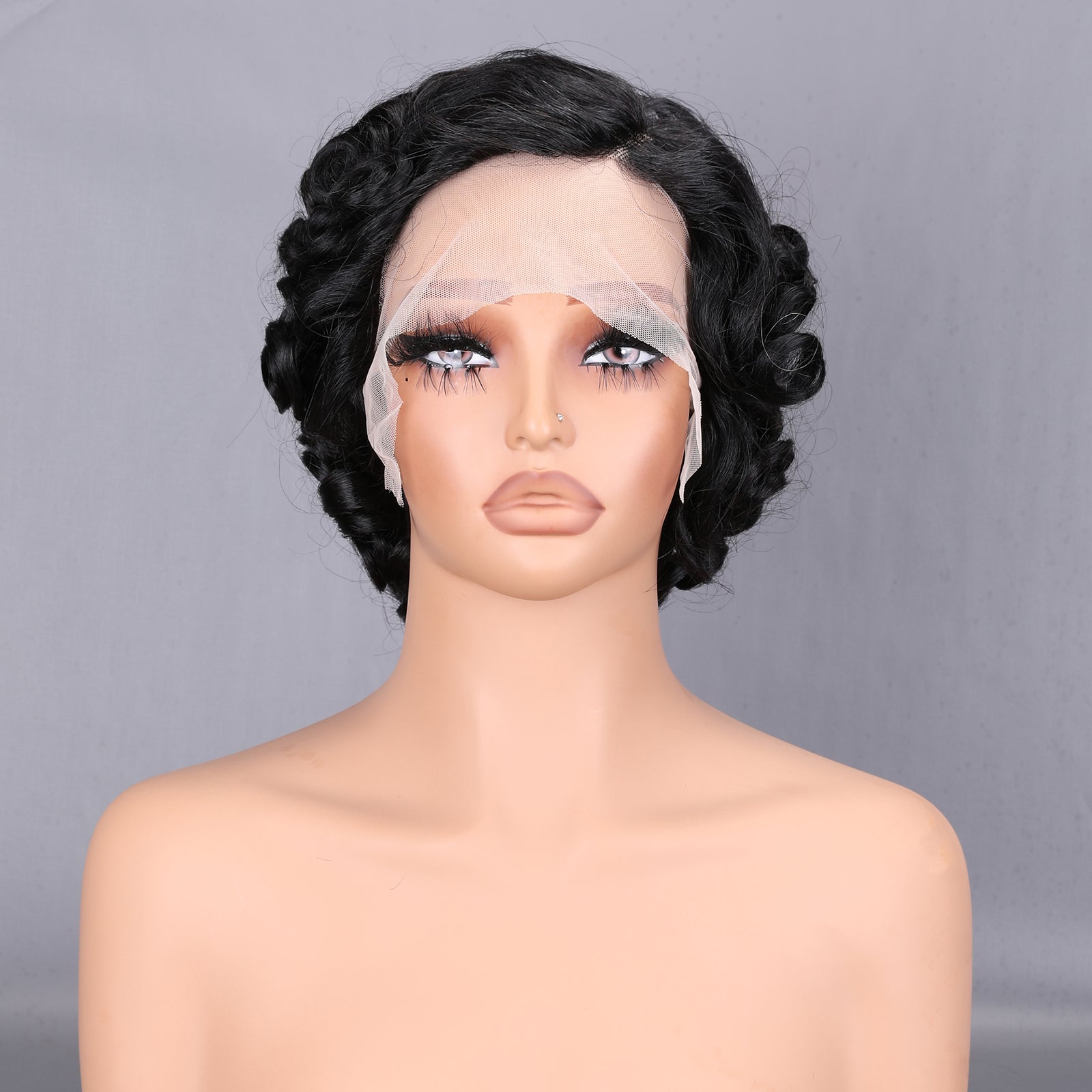 13x4 Lace Frontal Human Hair Bob Wig 200% Density Short Curly Bleached Knots Natural Black Heat Resistant BOSQUE Beauty