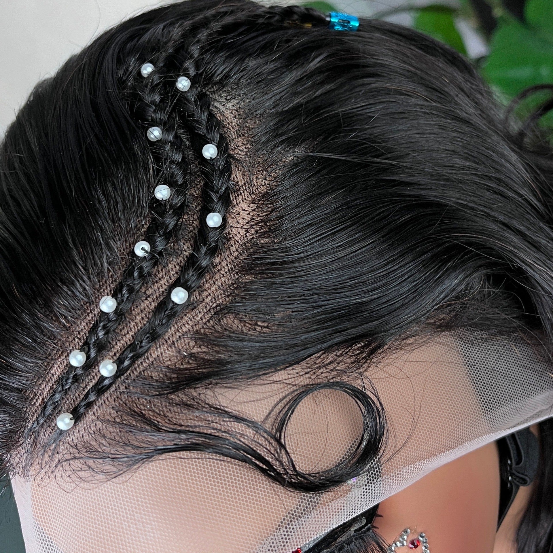 Peluca de gran oferta de África, Europa y Estados Unidos, sección corta, elástica, para cubrir la cabeza, peluca de 13 x 4, suelta y con rebote.