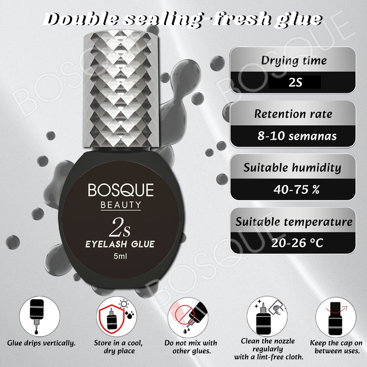 Pegamento para extensiones de pestañas, secado en 2 segundos, color negro, resistente al agua, solo para uso profesional.