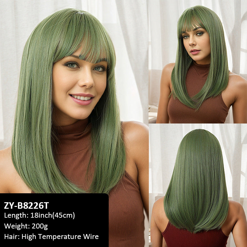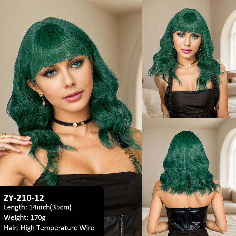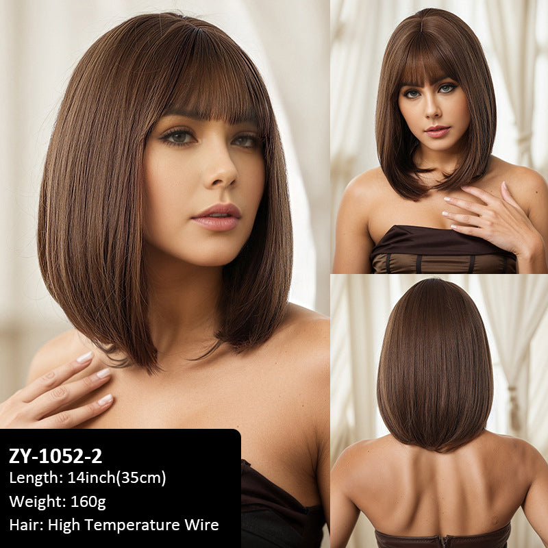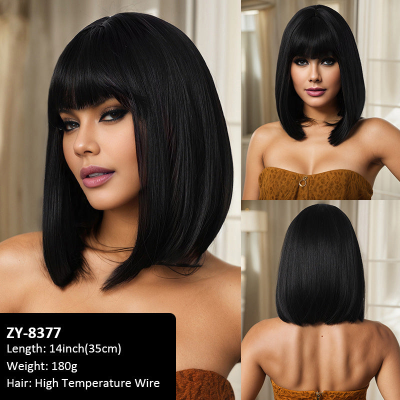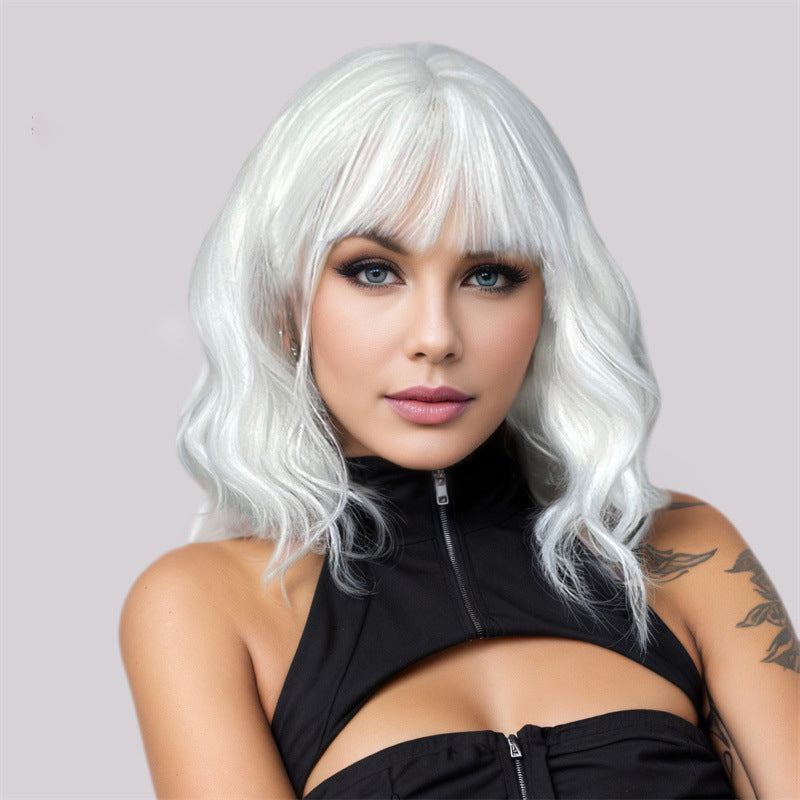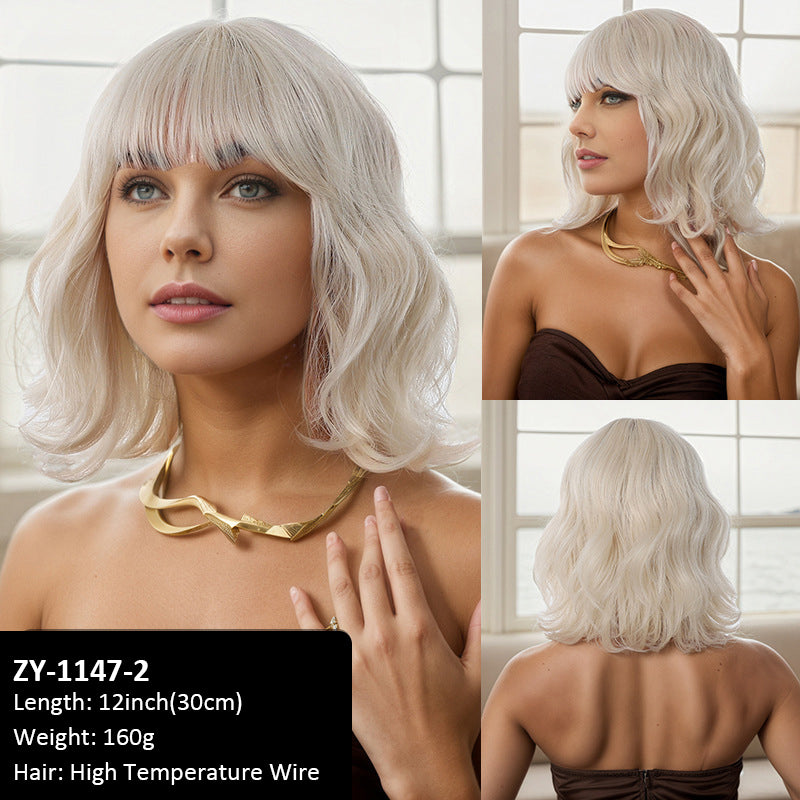 Export-grade wig full-head high-temperature synthetic hair wig, short style with lightweight airy bangs, 14-inch JK white wig in stock