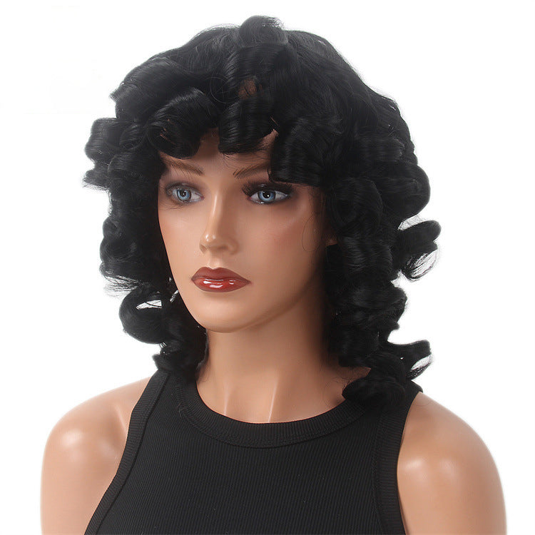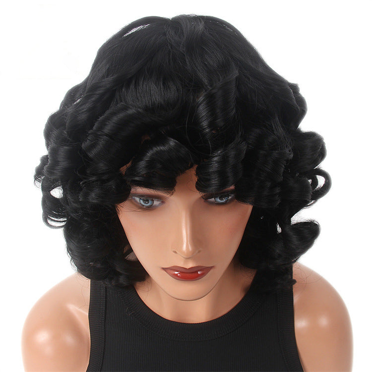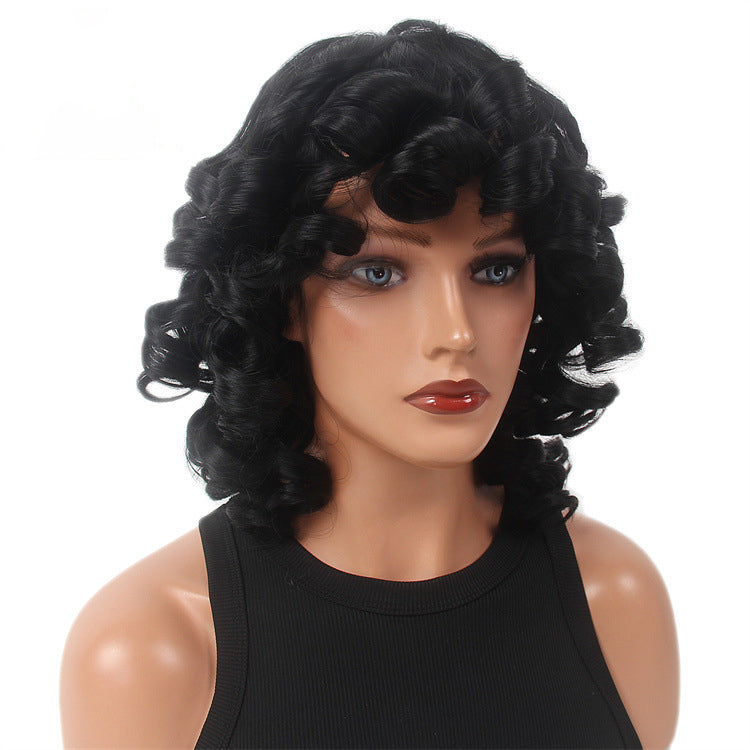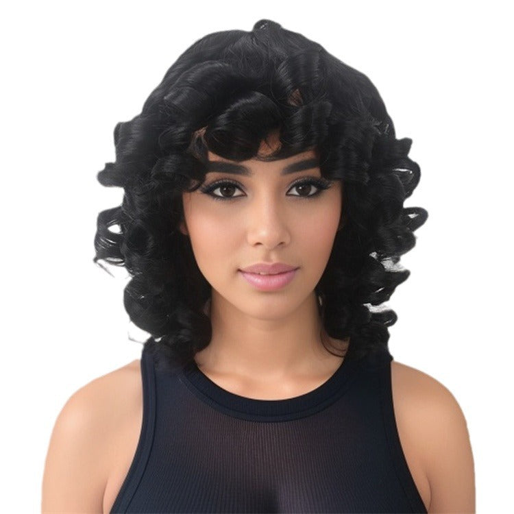 Export Trade: African Women's Black Short Curly Wig with Partable Bangs and Detachable Hairpiece