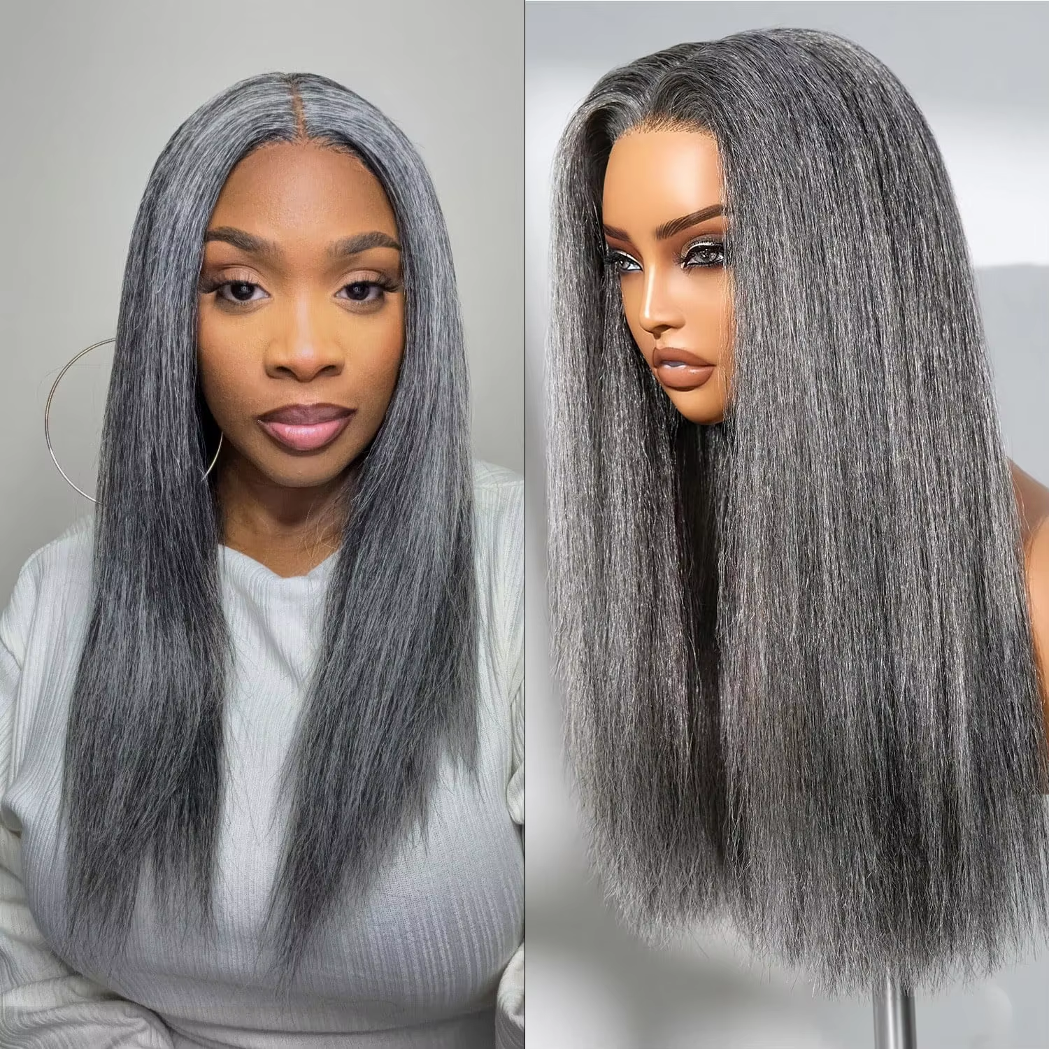 Fashion Silver Gray Straight 200% Density Wig - 13x4 HD Lace Front Glueless Human Hair Pre Plucked BOSQUE Beauty