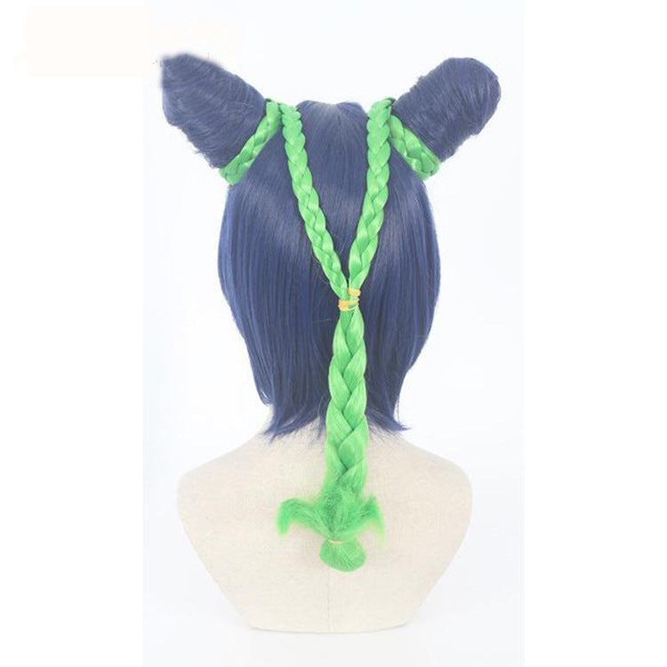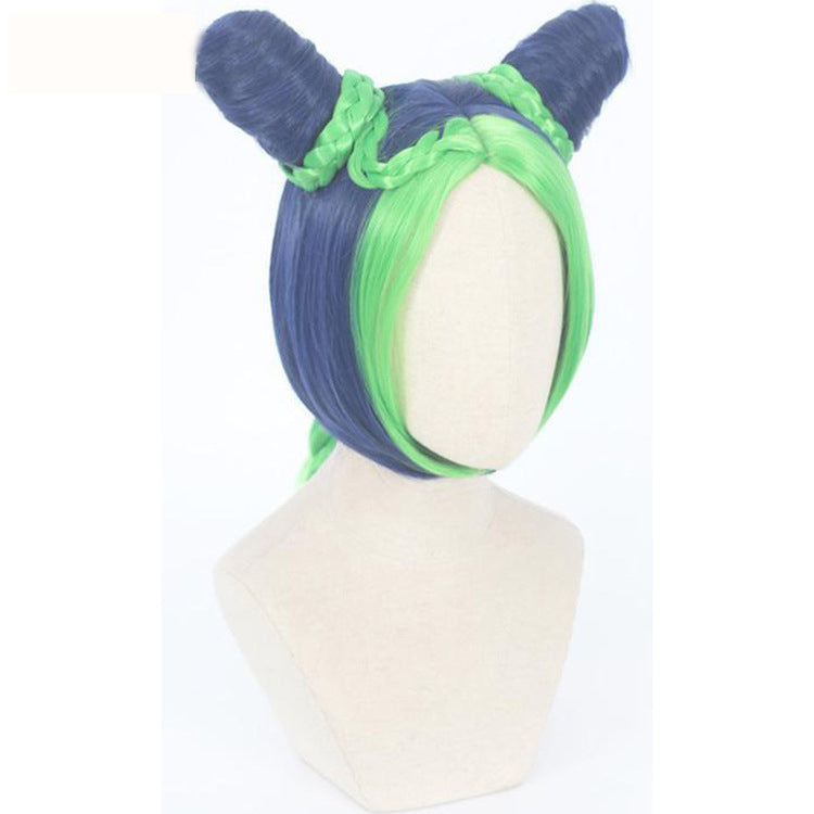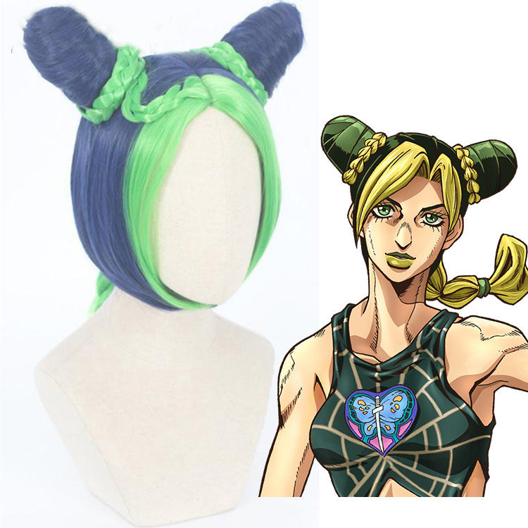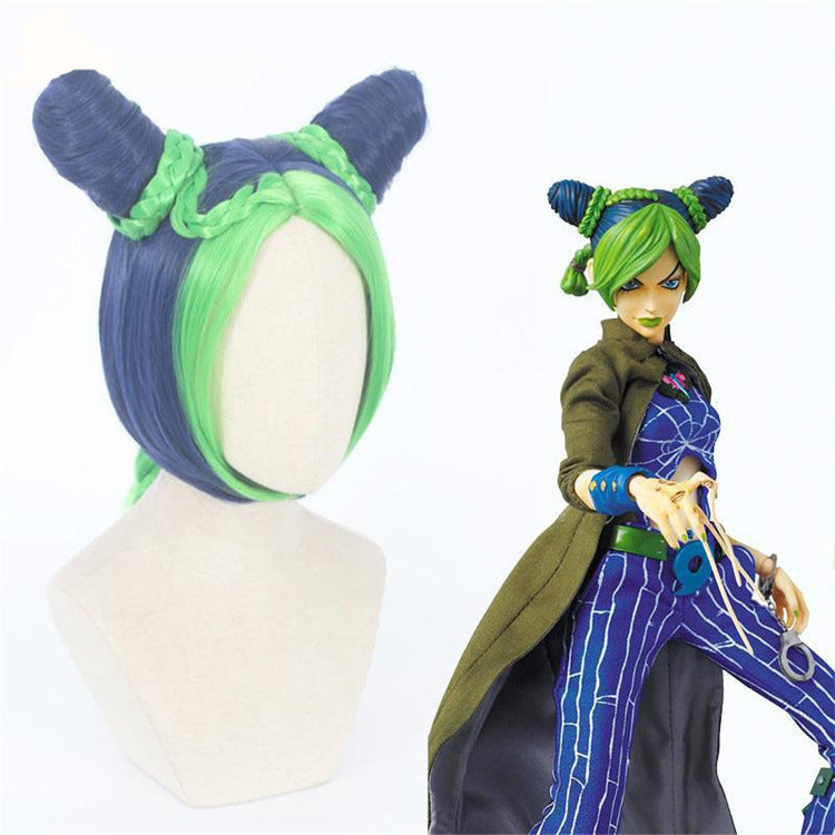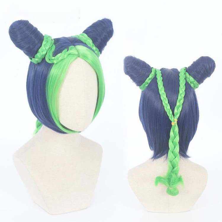 Peluca de cosplay al por mayor de JoJo's Bizarre Adventure, peluca de anime azul-verde con trenza de Jolyne Kujo