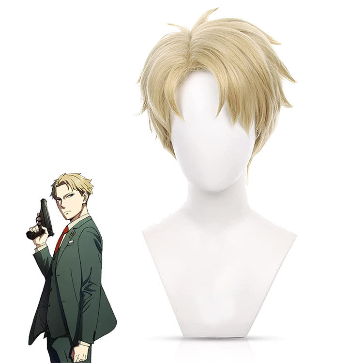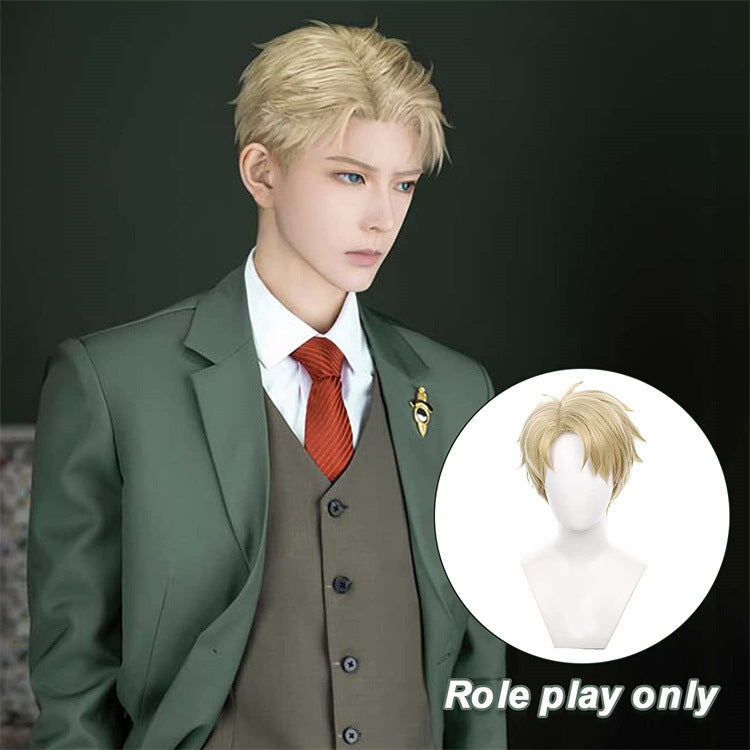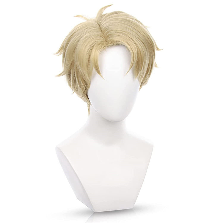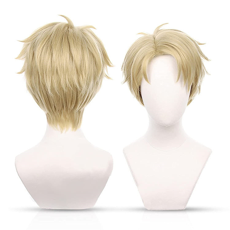 Peluca Loid Spy Play House Lloyd Folger, peluca corta amarilla dorada para hombre con el lado del anochecer.
